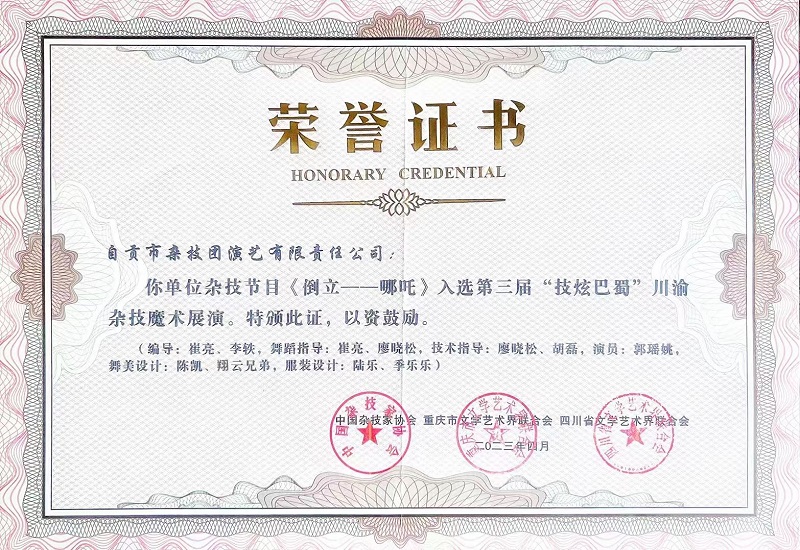 炫彩科技设计与制作《倒立-哪吒》组合拐子,荣获四川省巴蜀文艺展演“技炫巴蜀”文艺奖,制作单位提名:翔云兄弟炫彩科技,